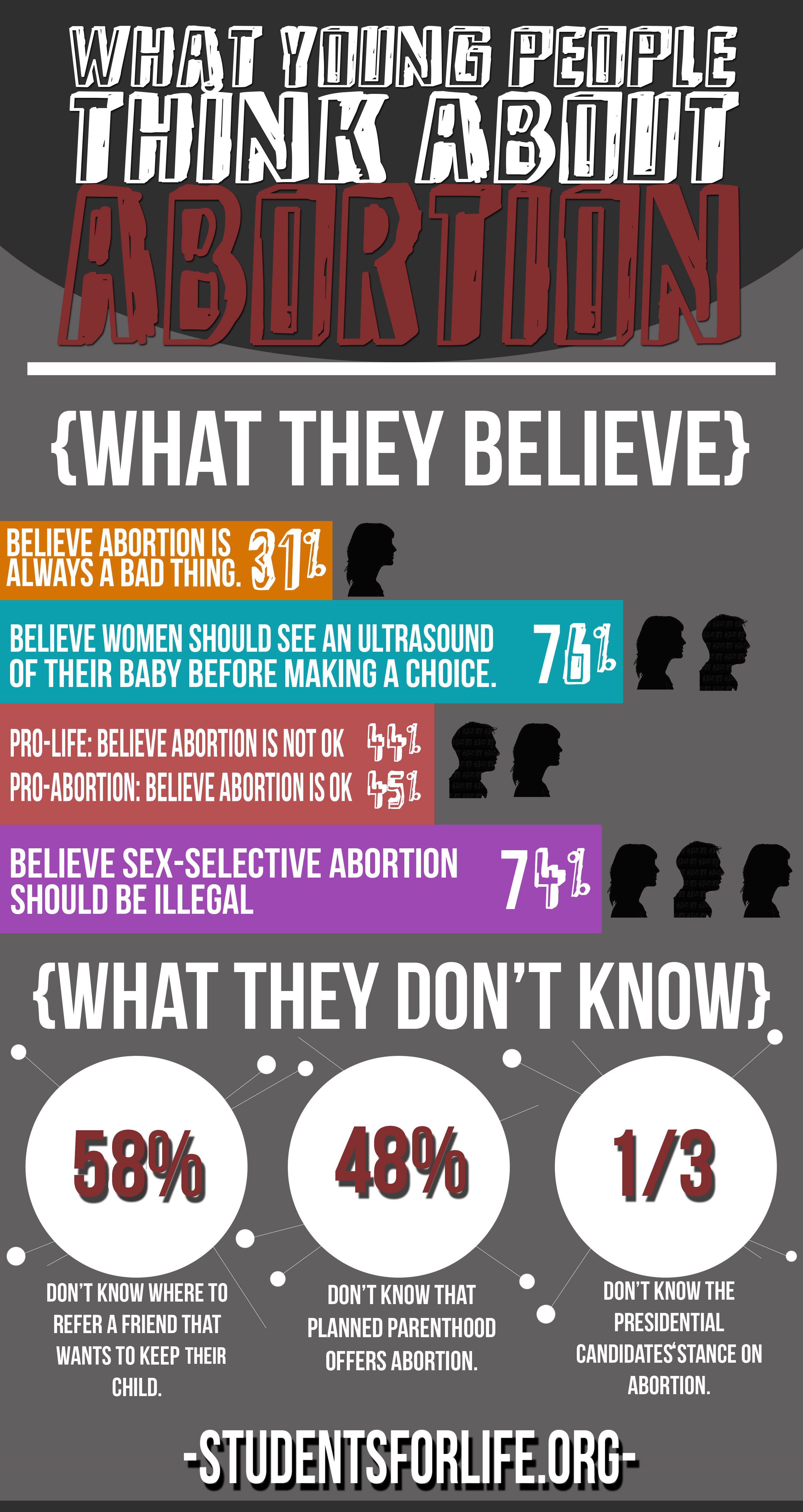 Here is an infographic about the young adult perception of abortion. Since I work with teenagers all the time I thought this was particularly a good question. “What do young people think about abortion vs the standard cultural position?” It is equally telling what the “don’t know” as it is what they do know.