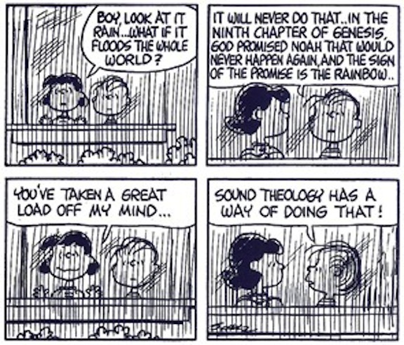 Correct relation to God is based in a sound biblical theology. We allow God to tell us through His Word how we connect with Him. Therefore, when resting in a sound theology of God’s love and interaction with His creation we can find peace for real life. We are not stranded, fighting for ourselves. We have one who fights for us. Sound theology directly influences our real lives. Check out the Peanuts comic strip that sees this connection when many people go though life and miss it.